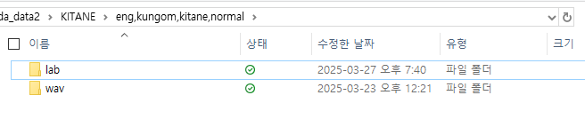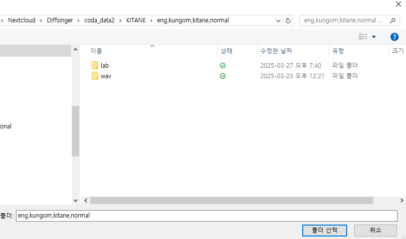 폴더는 lab과 wav 폴더가 있는 상위 폴더를 선택하셔야 합니다