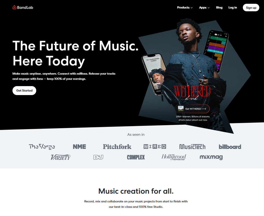 BandLab 사이트에 접속하여 Sign up을 클릭하여 회원가입을 진행합니다.
